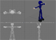 Block 3 - Week 10 - "IK-Joe" - 6/17/05 IK-Joe is a simple model with a fairly nice "rig". The school provides it so that we can learn how to animate without dealing with potentially poor models or rigs. It's my understanding that IK-Joe is used in one fom or another at many animation schools, and using it instead of one of our own setups mkeans that all students get to start "on the same page" for the actual animation segment. We spent the two weeks learning how to create Pose-to-Pose and Straight-Ahead animation. In simple terms, in Pose-to-Pose, you set up a number of poses to describe a course of action, then go back and tweak timing, and finally refine weight and balance issues. In Straight-Ahead, you decide what points A and B are, and then animate your way from A to B sans poses. Our project description was to have our IK-Joe overcome any one of 7 obstacles. Some were punching bags, balance beams, vertical walls, and monkey bars. I chose the rope-climb on a whim. At left are the final animations - just choose the format you prefer. |